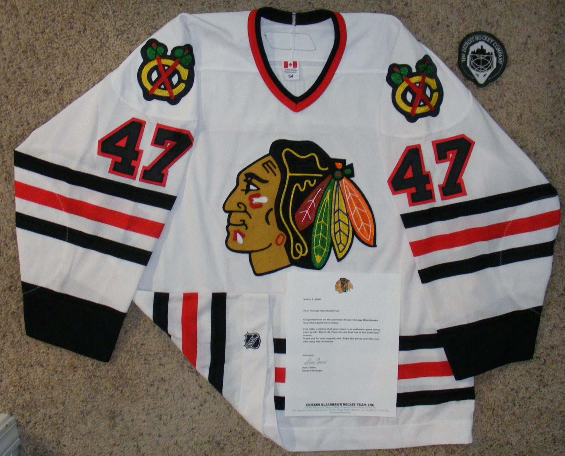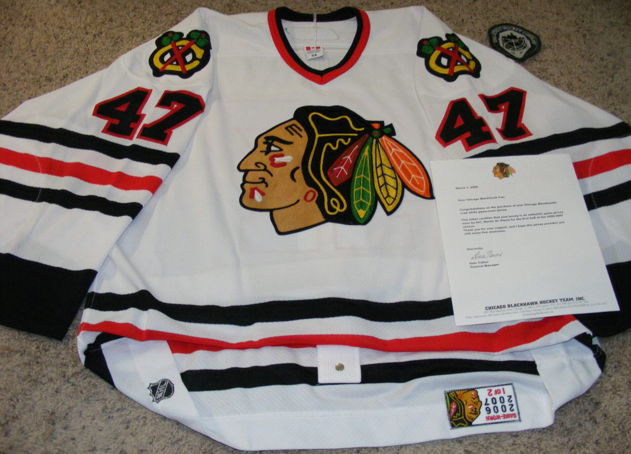 - Chicago Blackhawks Letter of Authenticity signed by General Manager Dale Talon accompanies this jersey