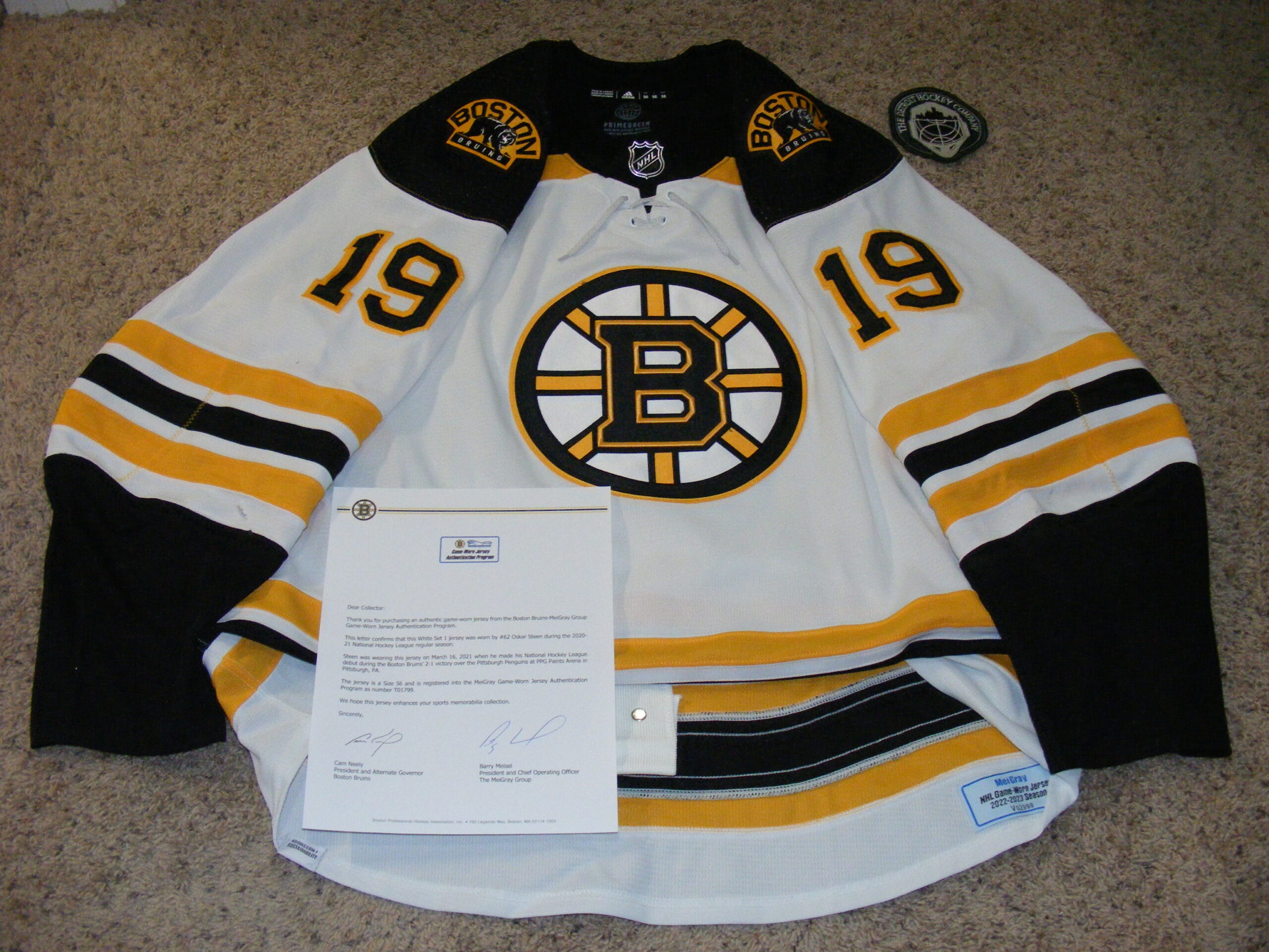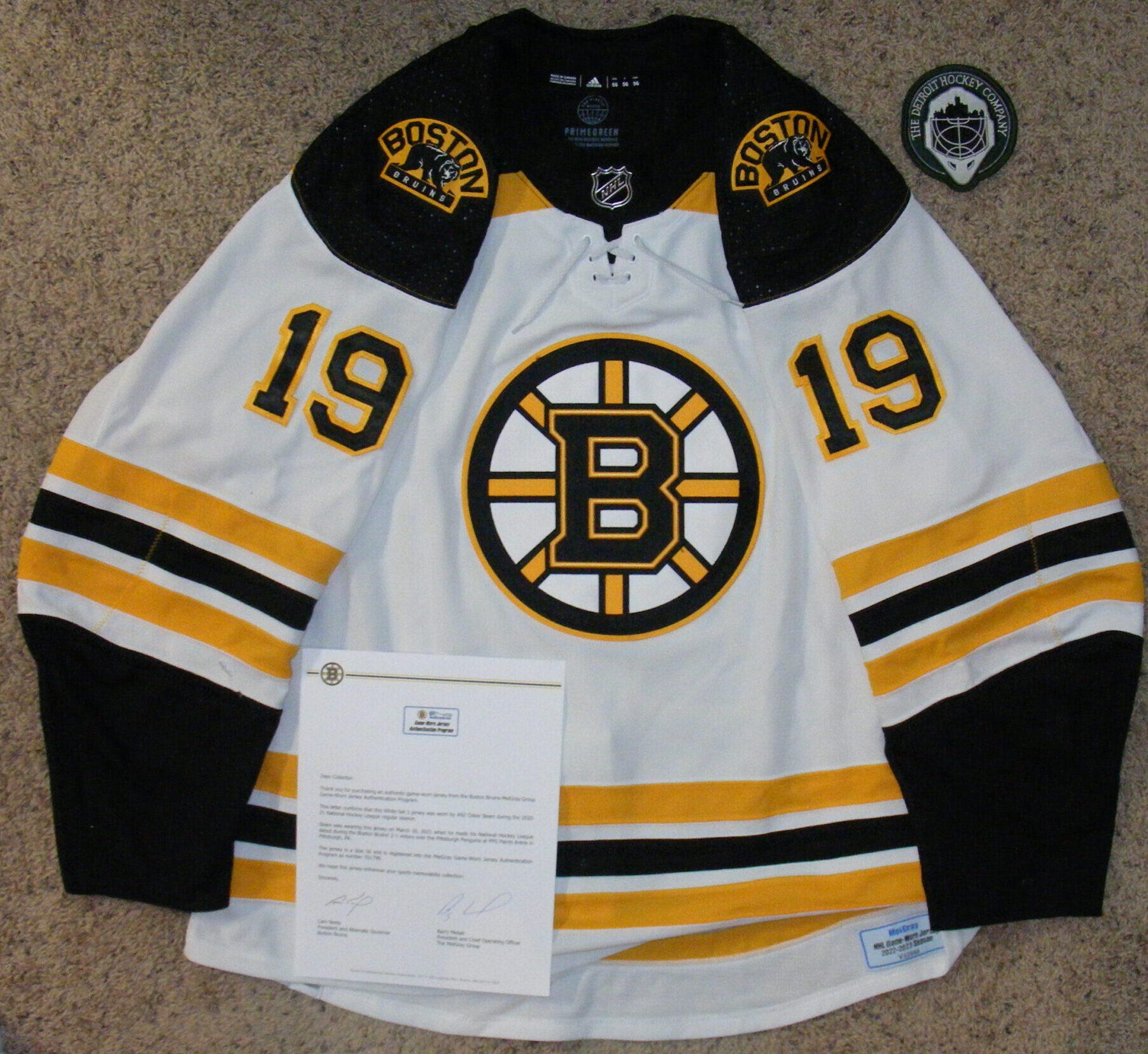 - Boston Bruins – Meigray Letter of Authenticity accompanies this jersey